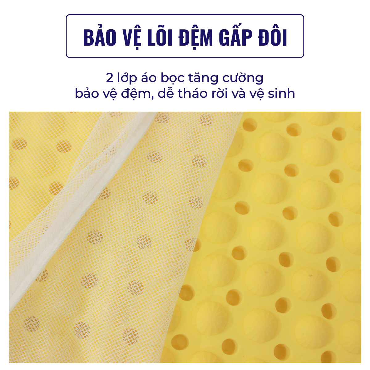 - 2 lớp áo đệm đều có khóa kéo rời, thuận tiện cho khâu thay mới và vệ sinh.